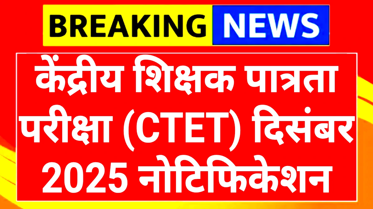 CTET December Notification 2025: केंद्रीय माध्यमिक शिक्षा बोर्ड (CBSE) हर वर्ष शिक्षकों की पात्रता जांचने के लिए केंद्रीय शिक्षक पात्रता परीक्षा (CTET) का आयोजन करता है। यह परीक्षा पूरे देश में शिक्षण क्षेत्र में प्रवेश करने के इच्छुक उम्मीदवारों के लिए एक महत्वपूर्ण परीक्षा मानी जाती है। हर साल सीटेट परीक्षा दो बार आयोजित होती है — पहली बार जुलाई सत्र में और दूसरी बार दिसंबर सत्र में।